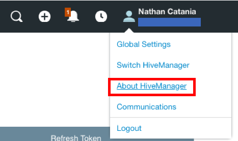 Hover over your name in the top right corner and click About HiveManager