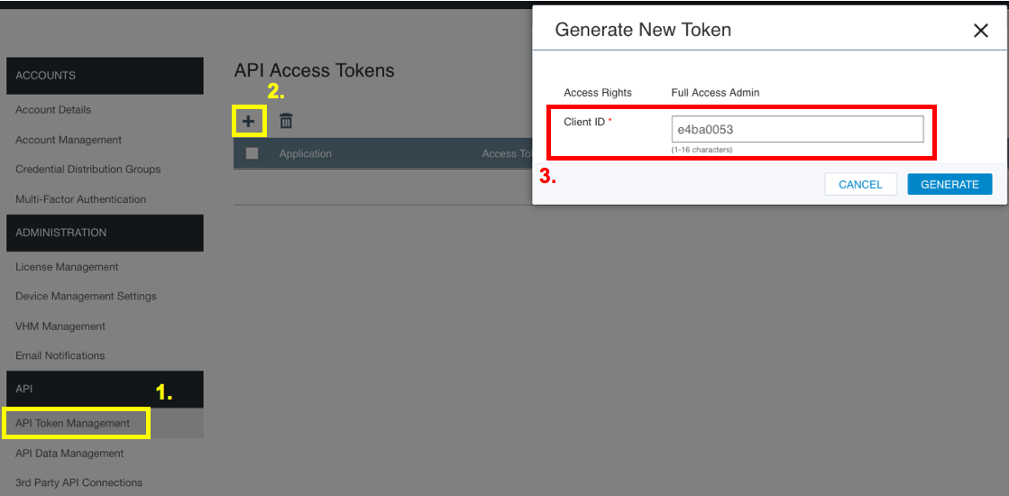 Click Generate to create an API Access Token.