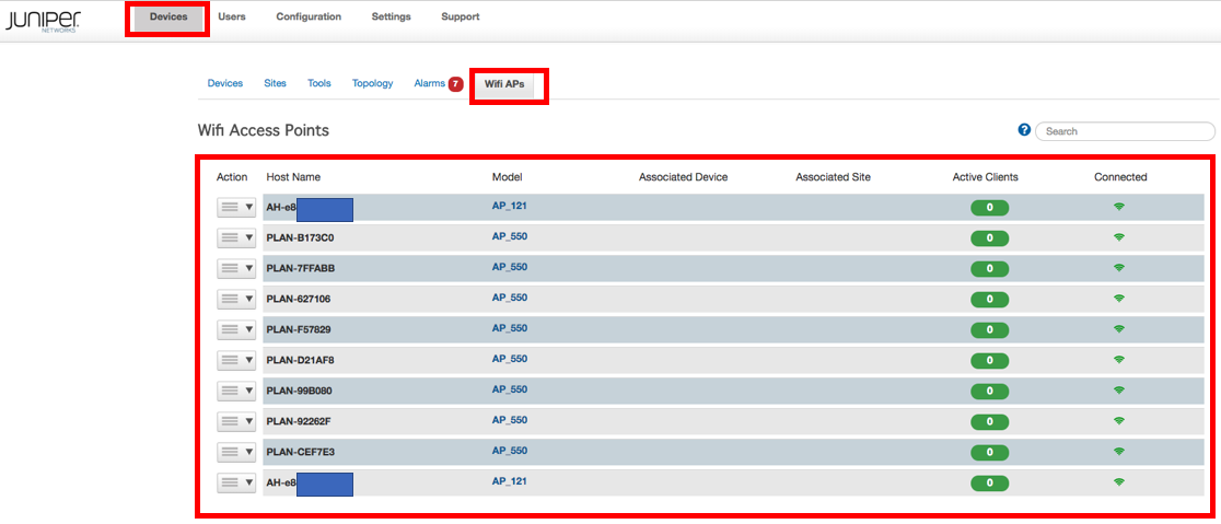 If the above step was successful, you should now have a Wifi APs tab under the Devices menu. This will list all of the APs you have in your HiveManager inventory.