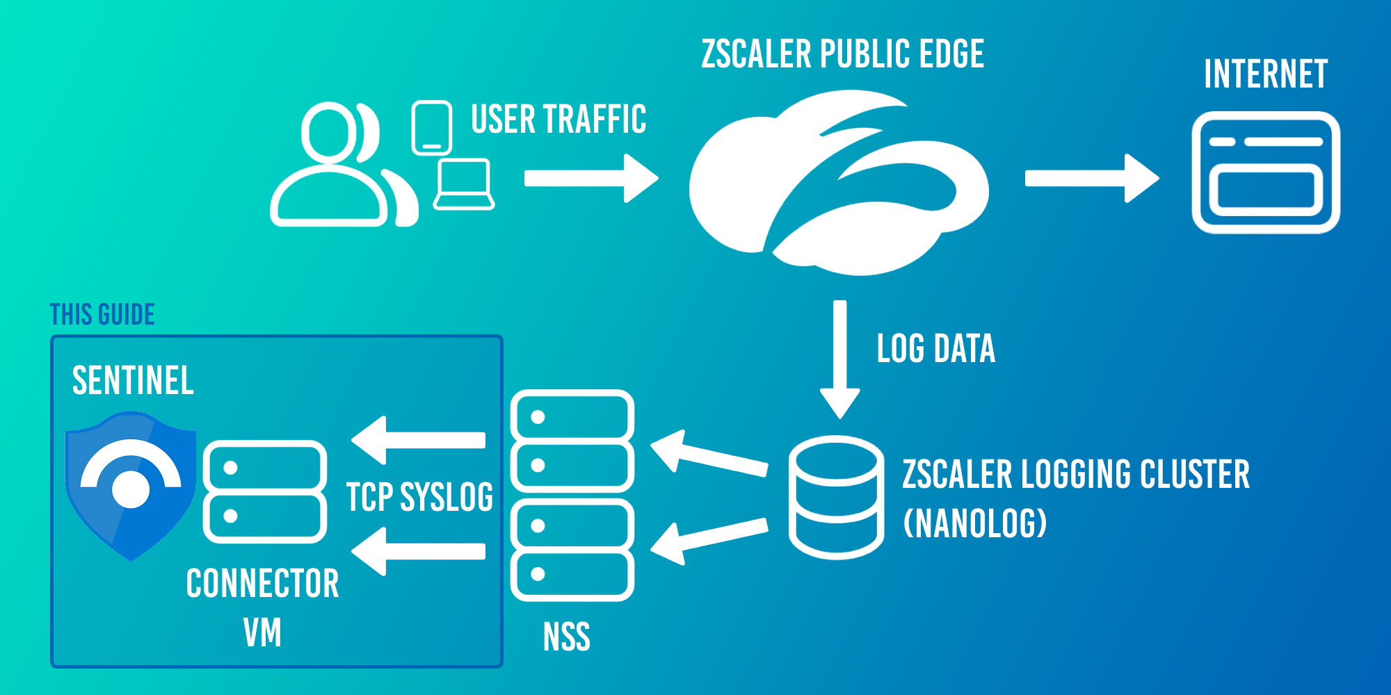 To stream Zscaler logs to Sentinel, you will need to have deployed Zscaler's Nanolog Streaming Service (NSS) VM and configured it in the ZIA admin portal. This will allow you to stream logs from Zscaler's logging clusters (called Nanolog) towards a SIEM or product of your choice (in this case, Sentinel).